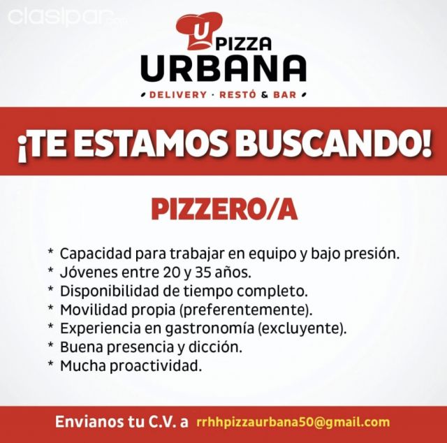 Detalle de: Clasipar.com Panadero, Comprá y Vendé en Clasipar.com Pizzero Fuente del anuncio:https://clasipar.paraguay.com/empleos/gastronomia/panadero-pizzero-2826131