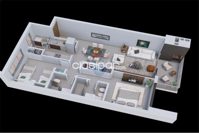 Casa de 3 dormitorios, 1 en suite con vestidor y 2 con baño compartido. Escritorio, sala comedor con jardín interno y baño social, cocina, quincho con baño independiente. Área de servicio con lavadero, depósito y 1 dormitorio con baño. Amplio patio. Fuente del anuncio:https://clasipar.paraguay.com/inmuebles/casas/casa-de-3-dormitorios-y-area-de-servicio-2880210