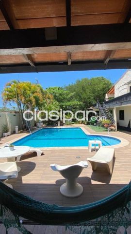 La vivienda cuenta con una entrada con jardinería frontal y palmeras, estar y comedor amplios, chimenea con área de estar adicional, cocina social con barra gourmet y baño social. Gran quincho con estar Comprá y Vendé en Clasipar.com y parrilla completa con accesorios, además de lavatorio adjunto.