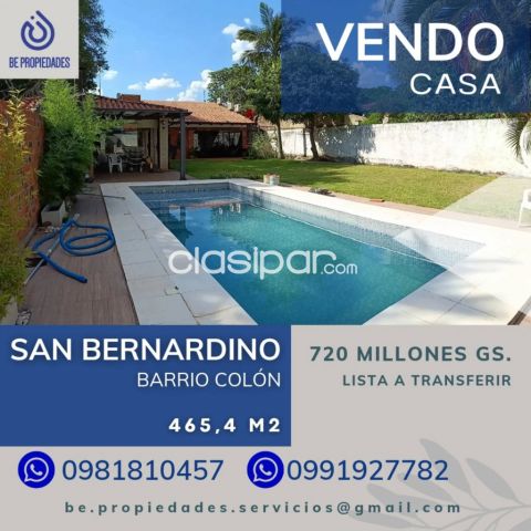 Ingresá a Clasipar.com. El Clasificado en Paraguay 📍VENDO CASA EN SAN BERNARDINO!!!.. ZONA EL CORTIJO!!..