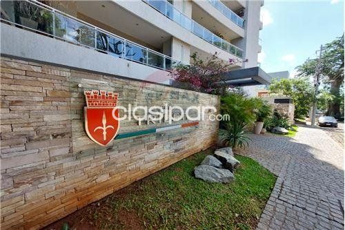 Living, jardín interno y quincho integrados generando un espacio social muy acogedor conectados al amplio jardín con El mejor clasificado en Paraguay. Clasipar! piscina y balcón . Estudio, estar íntimo y social, comedor , cocina, área de servicio y garaje para 3 autos.