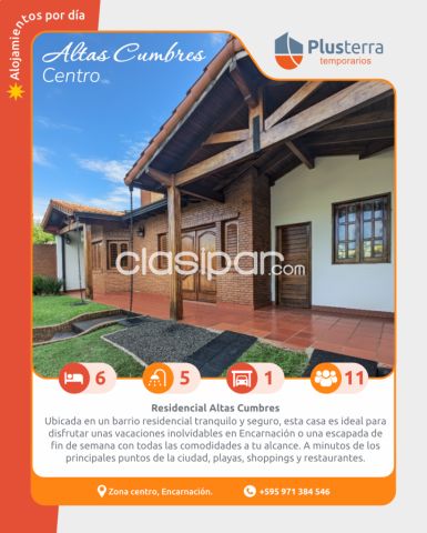 💬 Ideal para tus vacaciones, escapadas o estadías por trabajo en Encarnación. Fuente del anuncio:https://clasipar.paraguay.com/inmuebles/temporario-vacacional/casa-totalmente-amoblada-para-alquiler-temporal-en-encarnacion-2856666