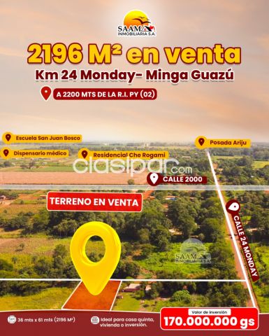 Ingresá a Clasipar.com. El Clasificado en Paraguay 📍 𝐔𝐛𝐢𝐜𝐚𝐜𝐢𝐨́𝐧: Terreno en venta en el Km 19 Acaray, Minga Guazú, a solo 400 mts de la Ruta Internacional PY (02), en una zona con gran potencial de Clasificados de Camiones en Clasipar.com crecimiento.