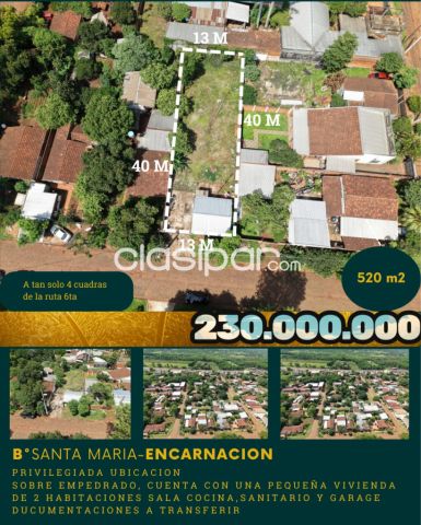 Se ofrecen en venta dos terrenos contiguos ubicados en el Barrio San Pedro de Encarnación, en Los mejores anuncios clasificados de Autos los encontrás en Clasipar.com una zona estratégica y de alto crecimiento, ideales para quienes buscan invertir y obtener rentabilidad mediante proyectos inmobiliarios, especialmente dúplex o viviendas multifamiliares.