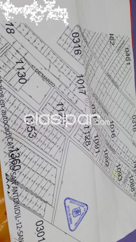 Buscas un terreno nuevo? en Clasipar.com lo encontrarás! Terreno titulado 12×30 e impuestos Buscas un terreno nuevo? en Clasipar.com lo encontrarás! al día a 6 cuadras de ruta1 ex Acceso Sur sobre la calle Golondrina y 1° de marzo al costado de la fábrica de Pulp en la Ciudad San Antonio Fuente del anuncio:https://clasipar.paraguay.com/inmuebles/terrenos/terreno-2832931