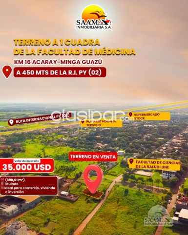 🌟 ¡Excelente oportunidad en Km 16 Acaray – Minga Guazú! 🌟 Fuente del anuncio:https://clasipar.paraguay.com/inmuebles/terrenos/terreno-en-venta-en-el-km-16-acaray-minga-guazu-2882470