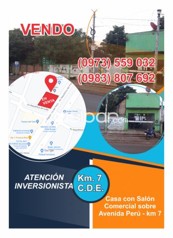 VENDO CASA CON SALÓN COMERCIAL KM 7 - SOBRE AV. PERÚ - ($850.000)