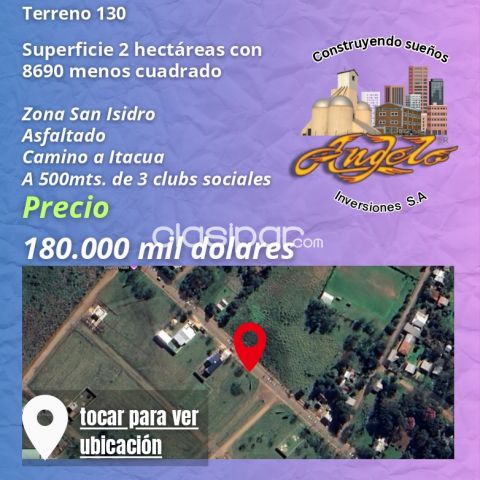 https://www.google.com/maps/place/27%C2%B022'52.3%22S+55%C2%B046'51.5%22W/@-27.381206,-55.78097,17z/data=!3m1!4b1!4m4!3m3!8m2!3d-27.381206!4d-55.78097?entry=ttu&g_ep=EgoyMDI1MTExNy4wIKXMDSoASAFQAw%3D%3D Fuente del anuncio:https://clasipar.paraguay.com/inmuebles/terrenos/terreno-plano-de-3-hectareas-san-blas-indepencia-2856095
