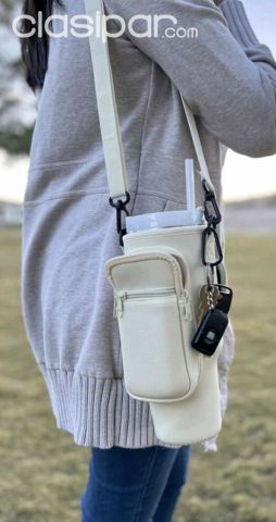 Funda para termo hopie con bolsillo porta llaves y celular, con correa.
