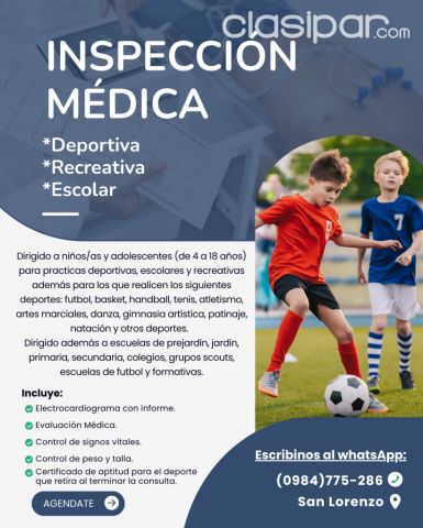 Los mejores anuncios gratuitos en Clasipar.com Inspección Médica Deportiva, Recreativa y Escolar