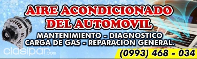 Los mejores anuncios clasificados de Autos los encontrás en Clasipar.com REFRIGERACION Clasipar.com en Paraguay DEL AUTOMOVIL, MANTENIMIENTO, CARGA DE GAS, REPARACION, Fuente del anuncio:https://clasipar.paraguay.com/servicios/mecanica-talleres/refrigeracion-automotriz-2893712