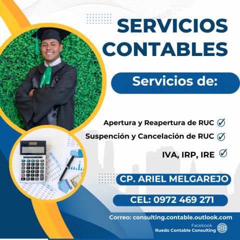Te ofrezco soluciones claras en: ✅ Gestión de RUC: Apertura, Suspensión, reapertura y cancelación. ✅ Liquidación de Impuestos: IVA, IRP, IRE . ✅ Contabilidad Mensual: Para que no se te pase ninguna fecha. ✅ Asesoría Profesional: Respuestas claras a tus dudas tributarias.