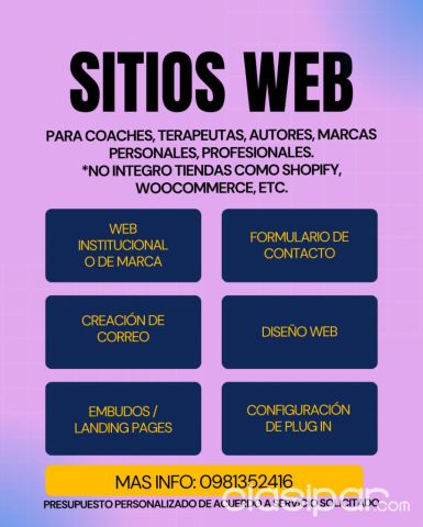 Una vez acreditado el pago inicial y definidos los contenidos necesarios, se da inicio al desarrollo del sitio web. Fuente del anuncio:https://clasipar.paraguay.com/servicios/oficios-tecnicos-profesionales/creacion-de-sitio-web-2885831