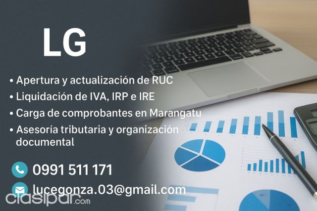 Trabajo con responsabilidad, puntualidad y confidencialidad, ayudando a que cumplas con tus Comprá y vendé electrónica ,autos e inmuebles. obligaciones tributarias de manera sencilla y ordenada. Fuente del anuncio:https://clasipar.paraguay.com/servicios/oficios-tecnicos-profesionales/servicios-contables-iva-irp-ire-marangatu-zona-capiata-2808559
