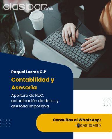 ASESORAMIENTO IMPOSITIVO !! Fuente del anuncio:https://clasipar.paraguay.com/servicios/otros-servicios/contabilidad-raquel-lesme-c0ntadora-publica-781030