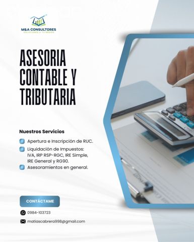 ¡No esperes más! Contáctame y te asesoro Fuente del anuncio:https://clasipar.paraguay.com/servicios/otros-servicios/servicios-de-asesoria-contable-y-tributaria-2882823