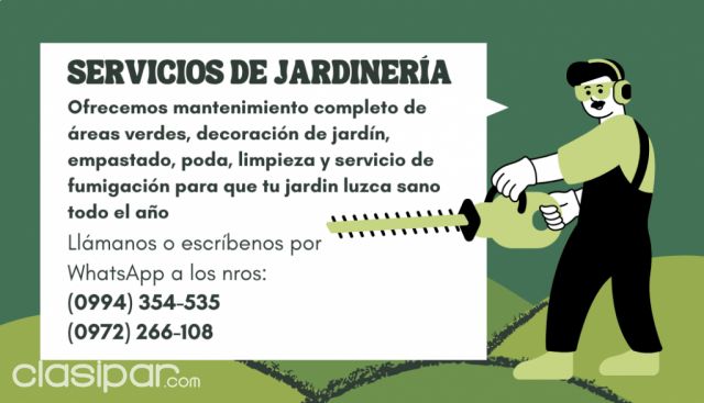 Encontrá todo lo que buscas en Clasipar.com Servicios de Los mejores anuncios clasificados. Jardinería Fuente del anuncio:https://clasipar.paraguay.com/servicios/otros-servicios/servicios-de-jardineria-2894199