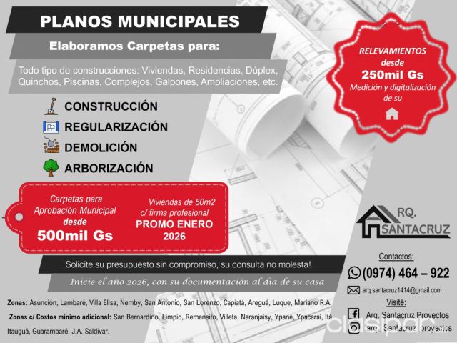 Contactos: (0974) 464 – 922 Fuente del anuncio:https://clasipar.paraguay.com/servicios/servicios-de-construccion-anexos/elaboracion-de-proyectos-arquitectonicos-y-planos-municipales-2873670