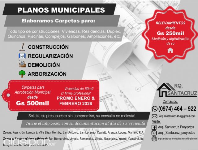 Contacto: (0974) 464 – 922 Fuente del anuncio:https://clasipar.paraguay.com/servicios/servicios-de-construccion-anexos/planos-municipales-2888974