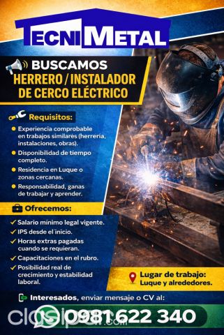 Busco auxiliar de herreria, tecnico instalador